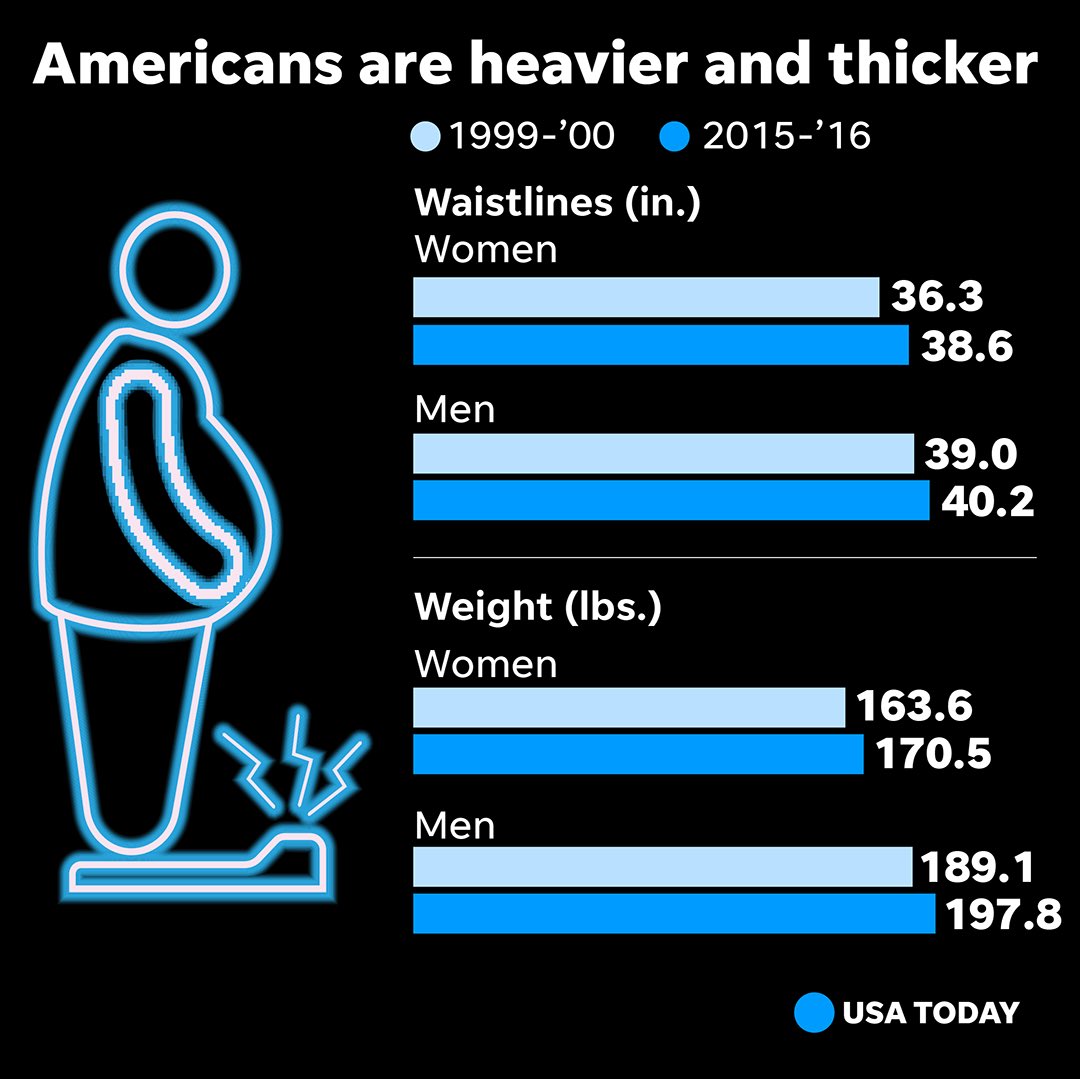 general, women’s waists grew more than 2 inches, from 36.3 in 1999-2000